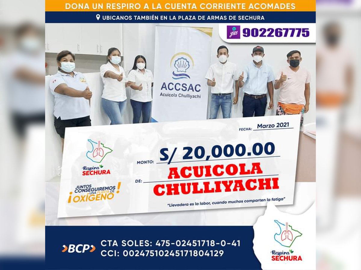 Acuícola Chulliyachi es responsable en dar uso a los recursos naturales, respetuosos del ambiente, comunidades y Asociaciones Artesanales a lo largo de la bahía de Sechura. Con miras en convertirnos en la empresa acuícola más rentable y sostenible de la industria regional y nacional contribuimos en jornadas de limpieza de playas y arborización de zonas urbanas del distrito de Sechura.